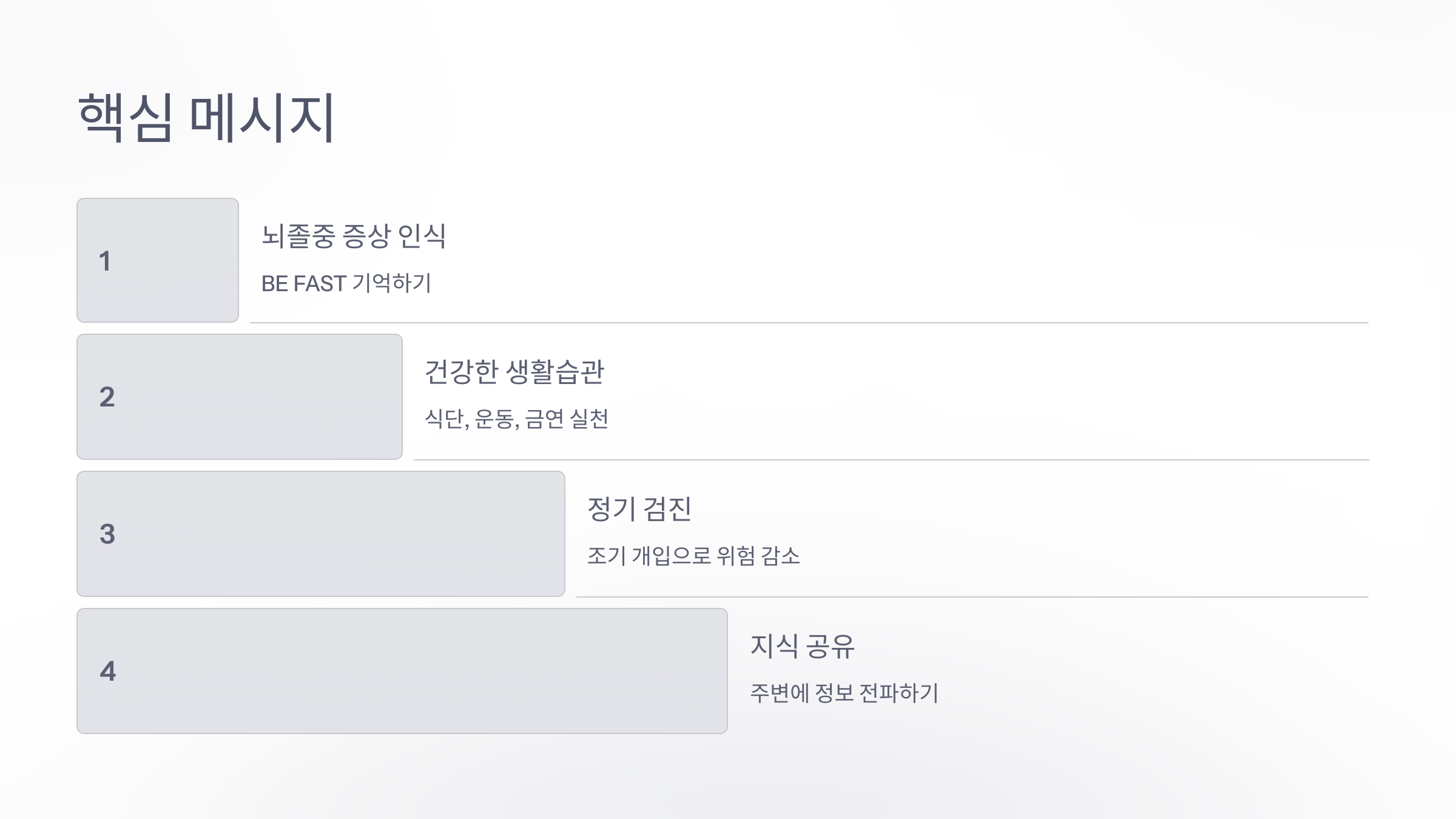 뇌졸중 예방은 인식과 적극적인 건강 관리에서 시작됩니다. 전조 증상을 인식하고 건강한 생활습관을 실천함으로써 뇌졸중 위험을 크게 줄일 수 있습니다. 뇌졸중은 시간이 중요합니다. 정보를 습득하고, 건강을 챙기고, 이 지식을 주변과 공유하세요! 🚑