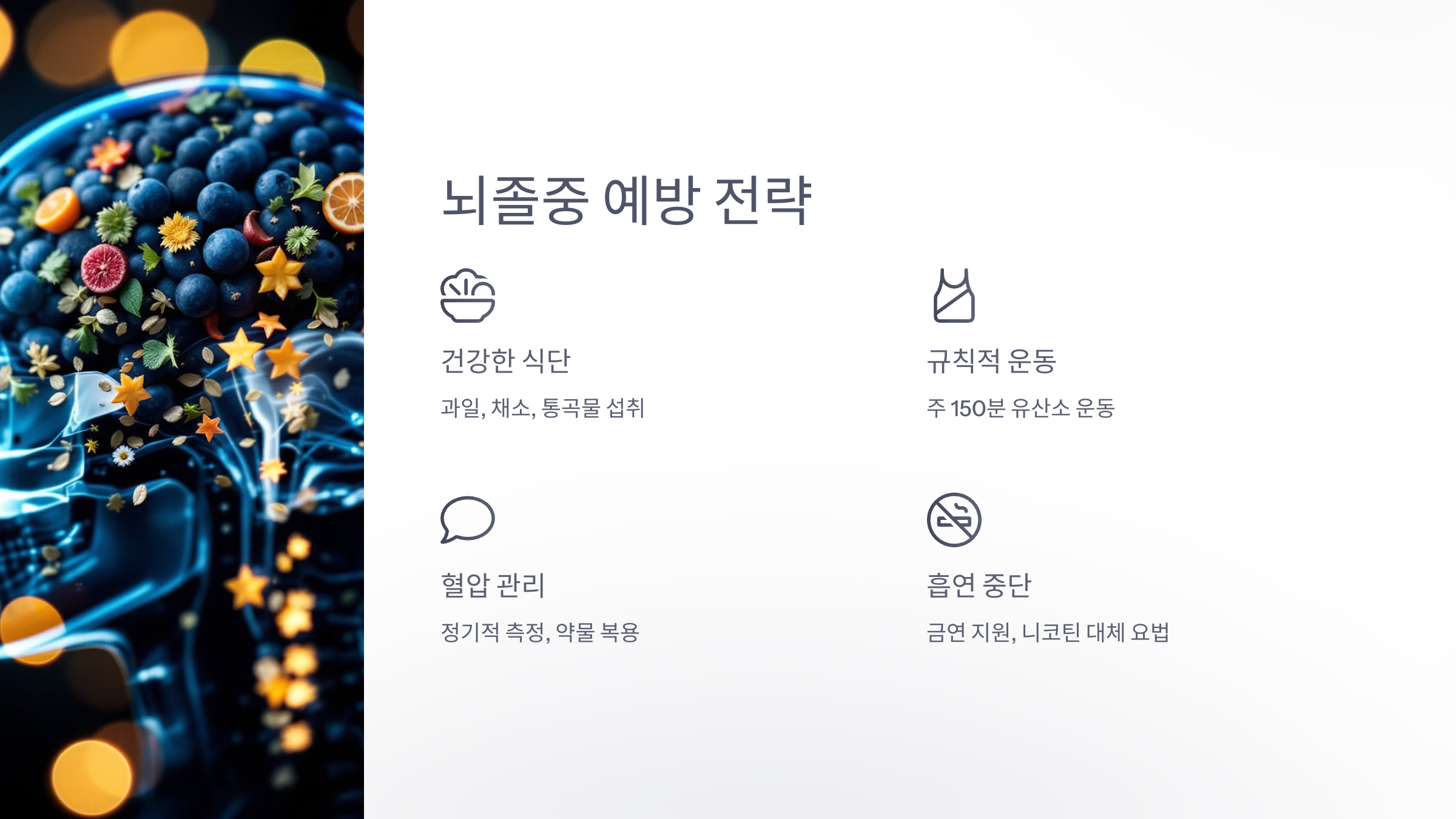 뇌졸중을 예방하려면 위험 요소를 관리하고 생활 습관을 개선하는 것이 중요합니다. 아래의 방법들을 실천해 보세요: