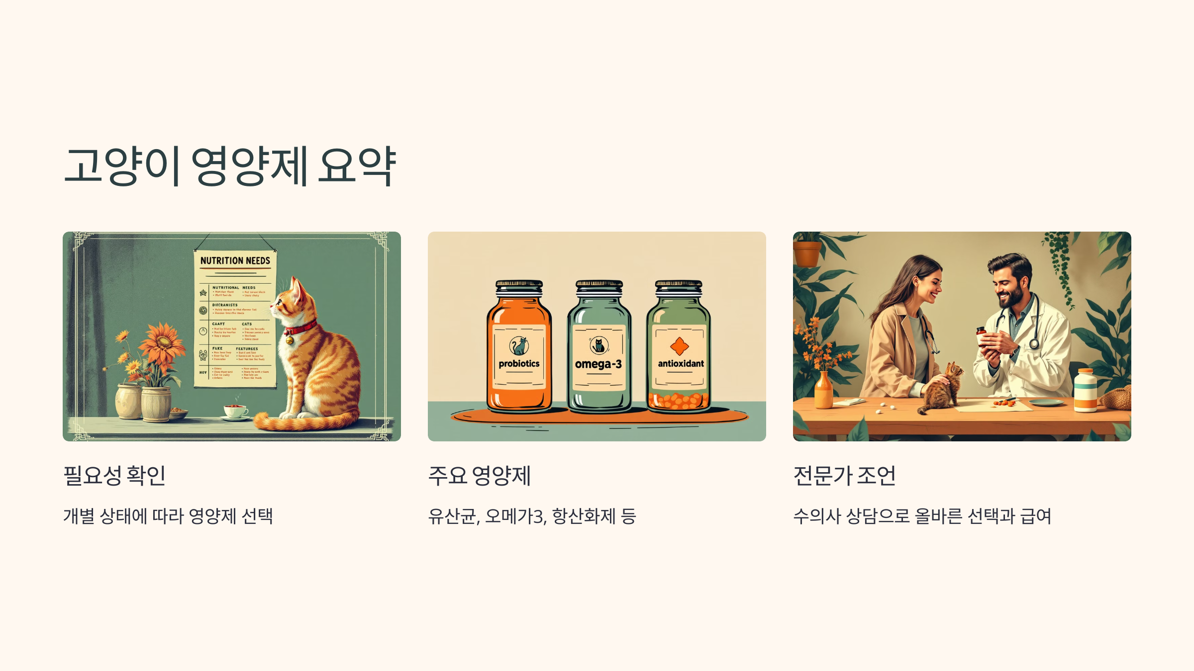 고양이 영양제, 정말 필요한가요? 🐱 유산균, 오메가3, 항산화제 등 영양제 종류와 필요성을 전문가 의견과 실제 사례로 확인해 보세요! 고양이 건강을 위한 필수 가이드!